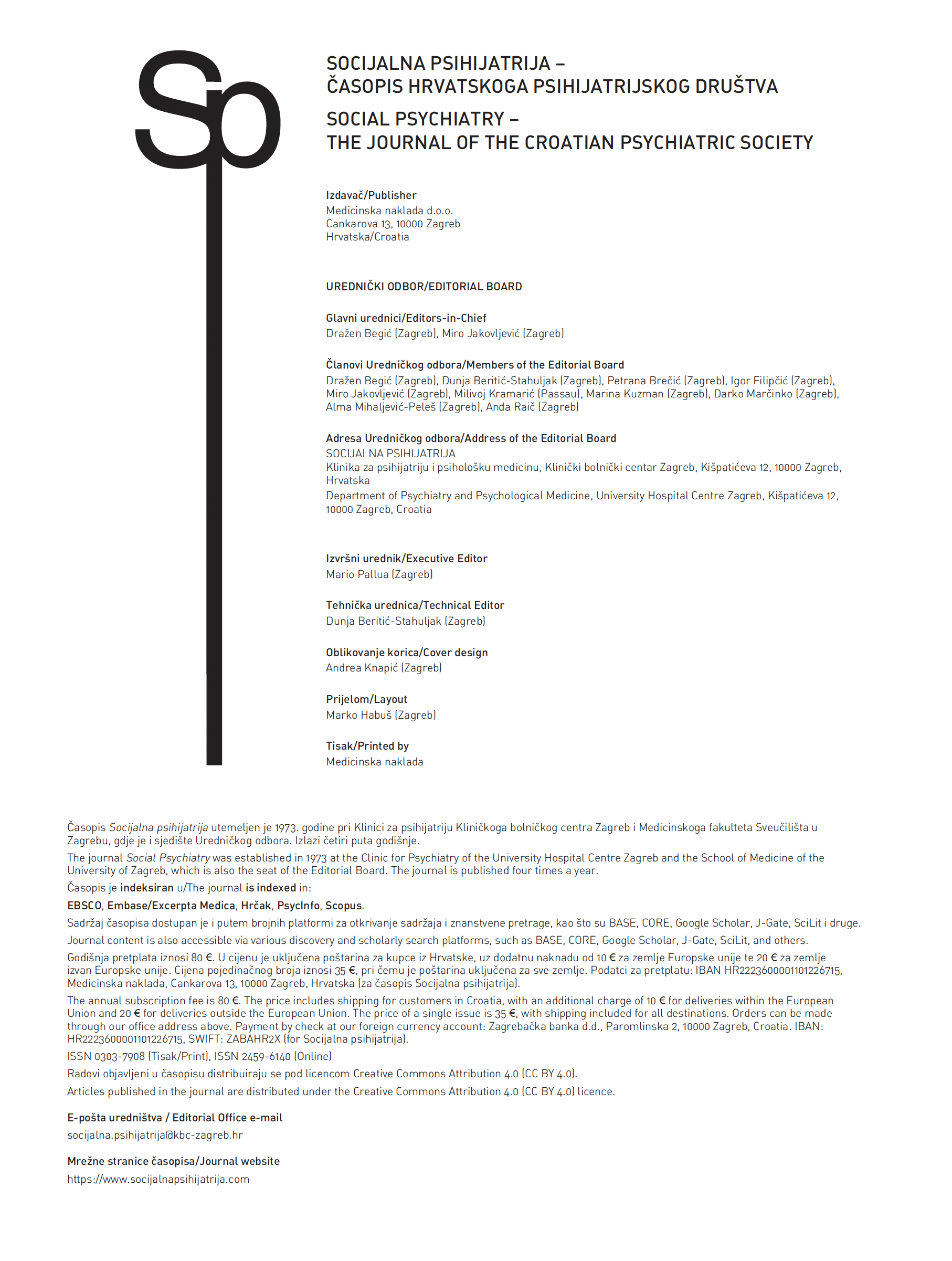 NAKLADNIŠTVO > ČASOPIS >  SOCIJALNA PSIHIJATRIJA